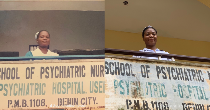 A Nigerian nurse has turned heads as she recreated an impressive picture taken by her mother, also a nurse, 20 years ago, in the same spot at the same hospital.