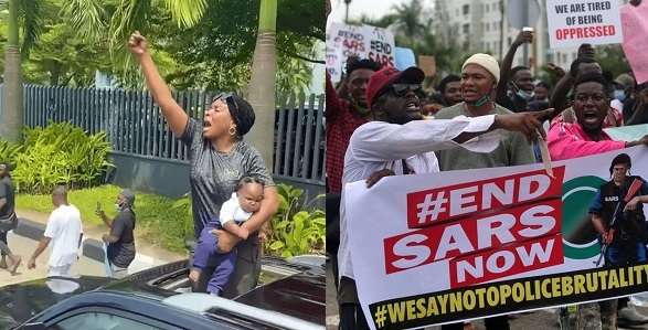 A nursing mother has been spotted joining the #EndSARS protest with her daughter earlier today and a video recording shows her giving a quite moving speech while protesting.