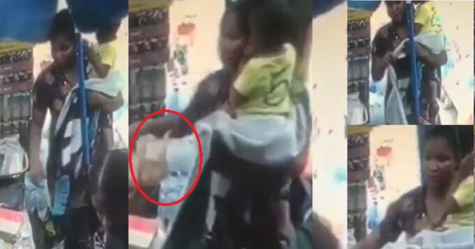 A video making the rounds online captured the moment a Nursing Mother who pretended to be a Job seeker, stole a bag in a shop.