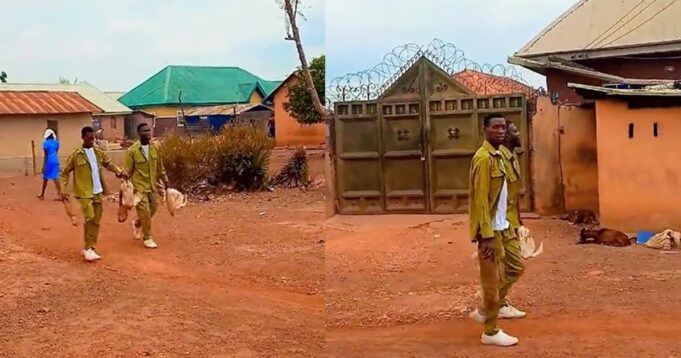 The Corpers were spotted in a clip shared on TikTok joyfully carrying live chickens and tubers of yam home.