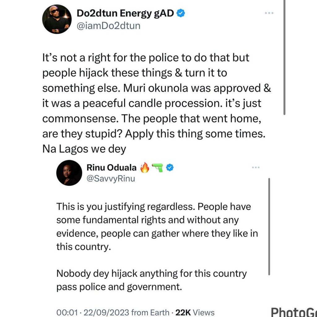 Nigerian on-air personality, Dotun, and activist, Rinu Oduala, had a minor altercation on the micro-blogging platform X on September 22nd over their differing opinions about the incident that unfolded at the memorial of the late singer, Mohbad.