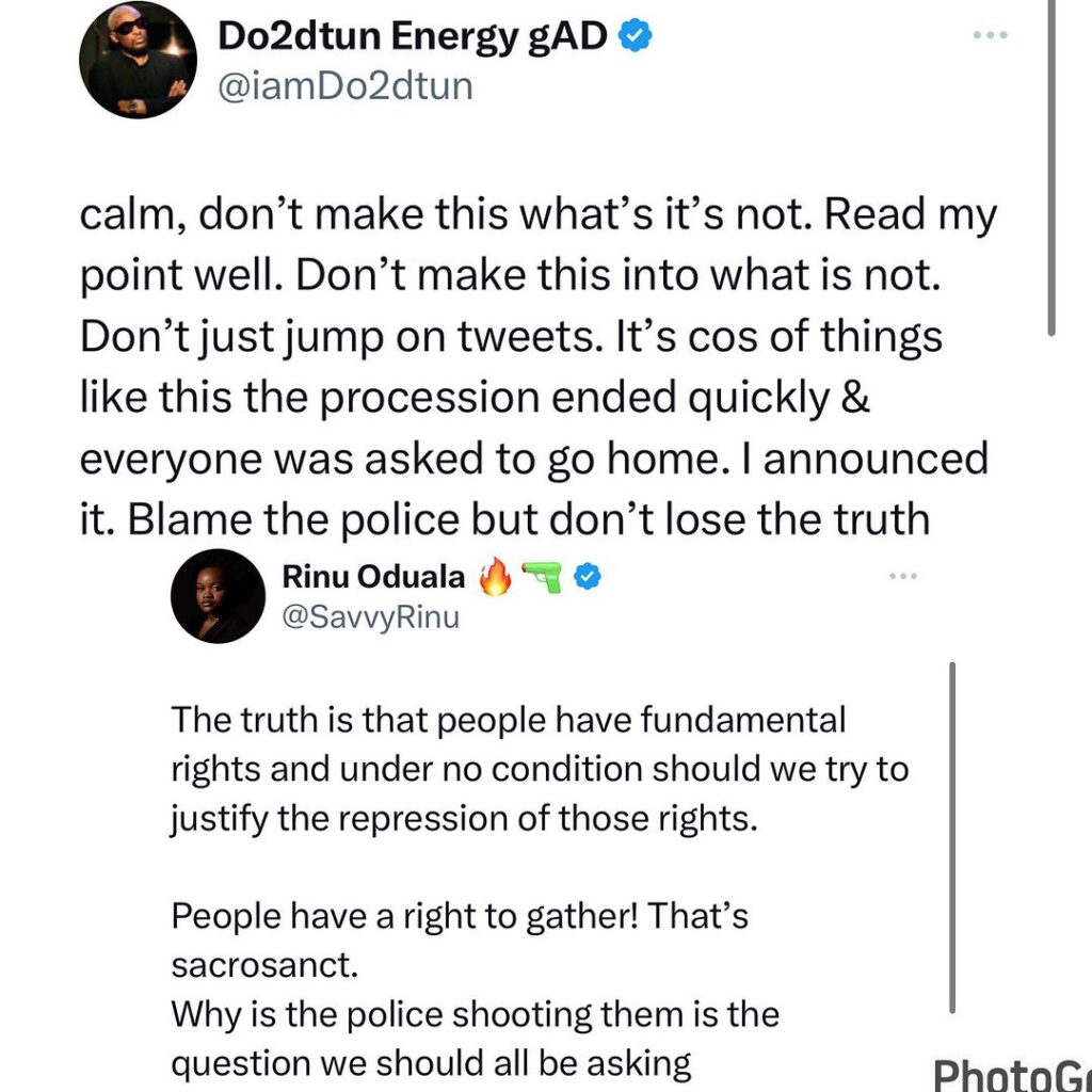 In the aftermath of the unrest, Dotun took to X to blame the protesters for refusing to leave the event after it ended around 8 pm and then proceeding to Lekki Toll Gate to stage a protest.