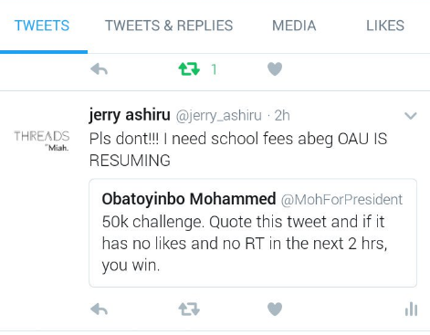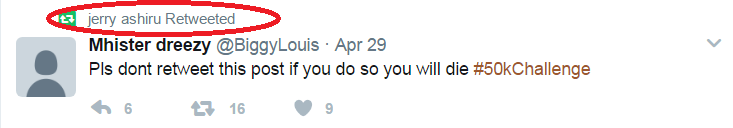 Apparently, this game was taken to “Twitter”, But this time, the user promised to give out N50,000 to anyone whose tweet doesn’t get a retweet. Then here’s the weird part.
