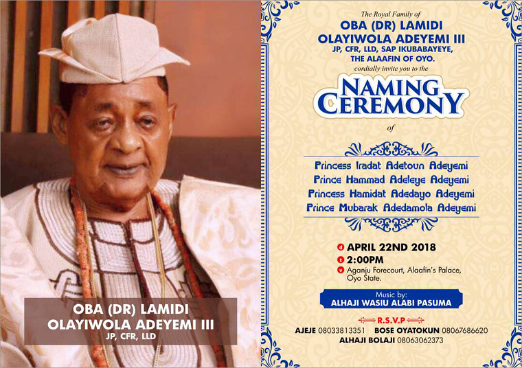The naming ceremony of 80-year-old Alaafin of Oyo’s two sets of twins is set to hold this coming Sunday, April 22.