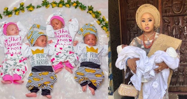 Mothers of the twins, Olori Memunat and Olori Badirat Olaitan shared the details on Instagram.
