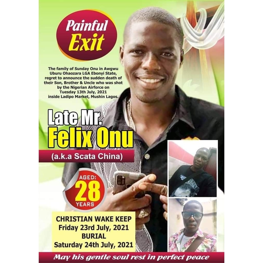 The family of young trader who was shot dead in the popular Ladipo market, Lagos state, have released details of his burial arrangements to the public.