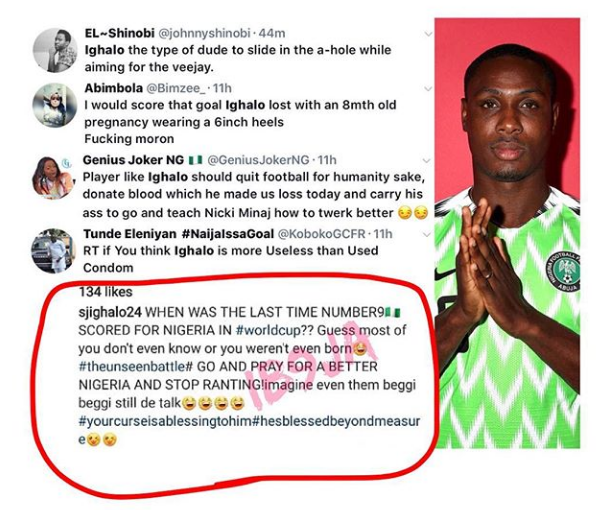 Sonia Ighalo, wife of Super Eagles player, Odion Ighalo, has slammed Nigerians who criticized her husband for his poor performance in the Super Eagles game against Argentina which they lost 2-1.