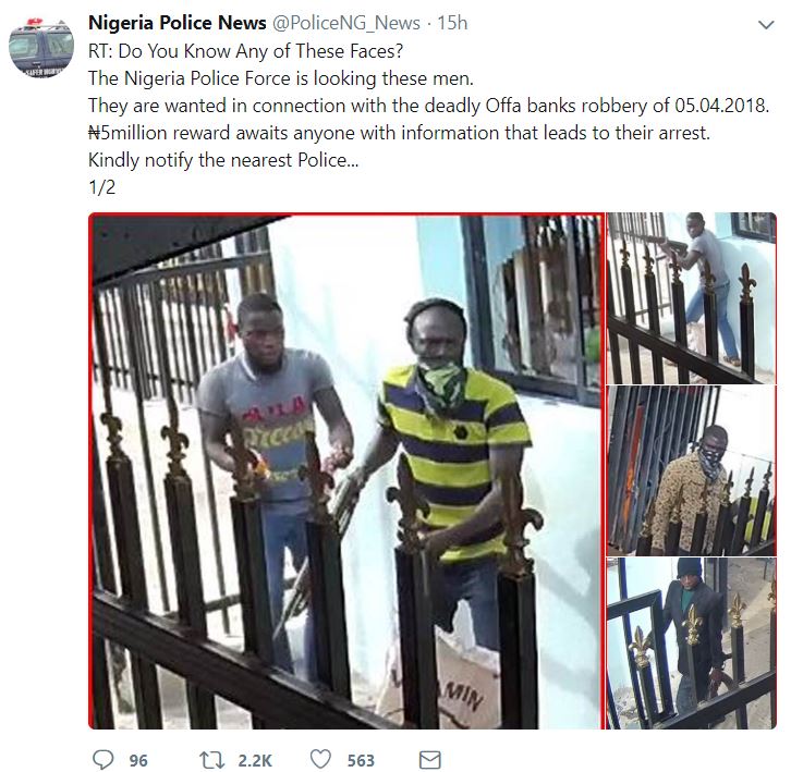 The police said the Kwara State Government has also promised a N5 million bounty for information about the suspects, and they listed the hotlines to be contacted as 08062080913, 08126285268, 08032365122, 07056792065, 08088450152.