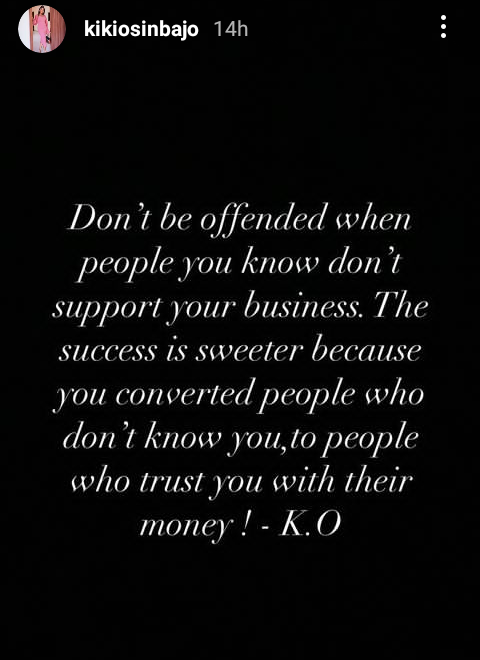 Kiki in a recent Instagram post opined that success is sweeter when strangers trust you with their money.