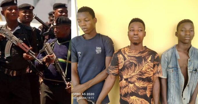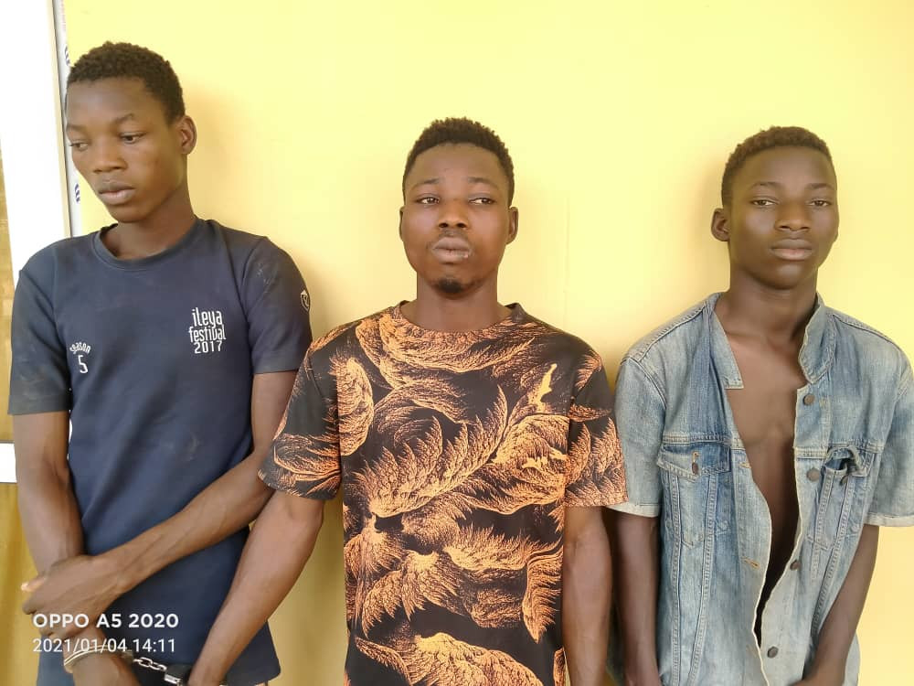 Men of the Ogun Police Command have apprehended three brothers identified as Okiki Mulero (23), Micheal Mulero (21), and Joseph Mulero (17) for beating a So-Safe corps officer who was on guard duty at OGD Estate, Asero to death on the eve of Christmas.