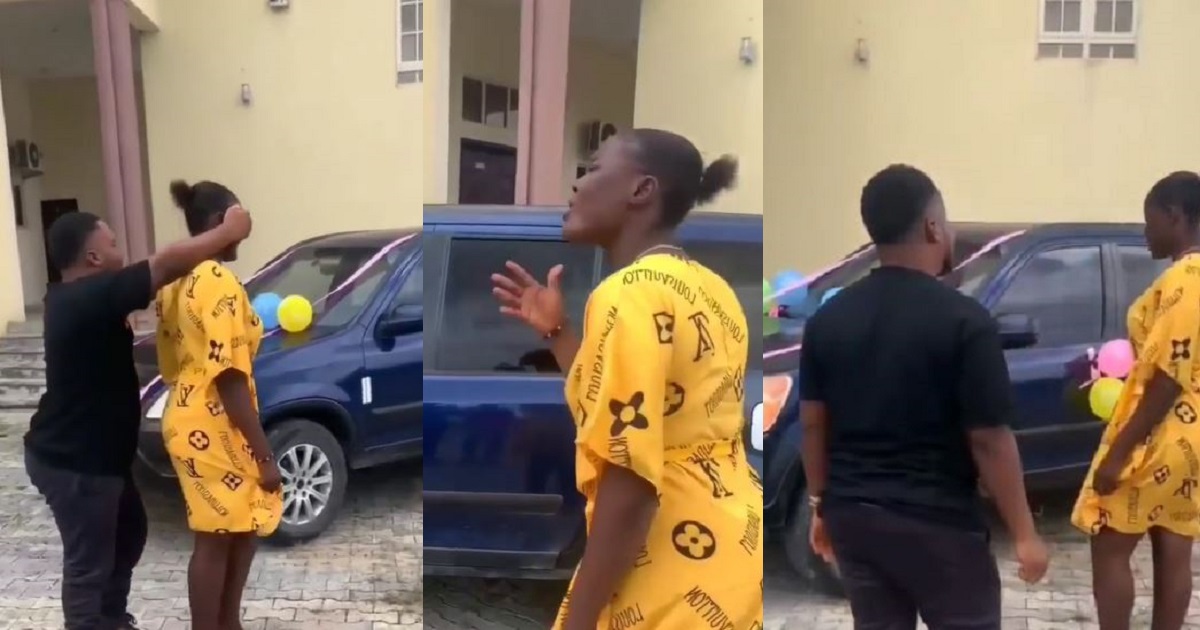 A lady’s somewhat odd reaction to a car gift from her boyfriend has stirred reactions online.