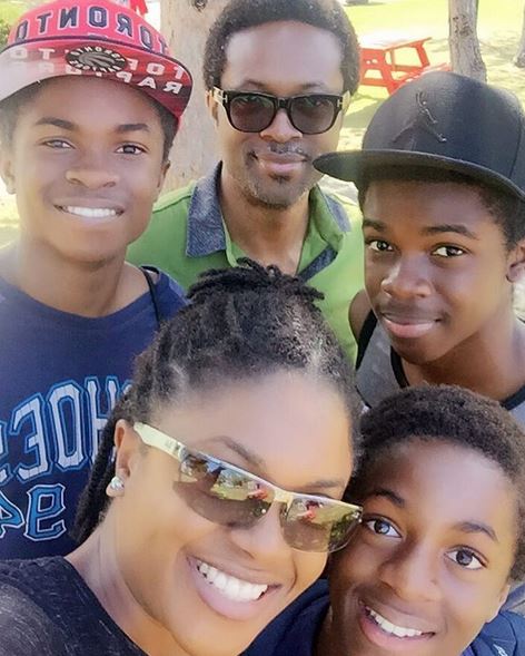 Omoni Oboli shared this adorable selfie of herself and the handsome looking men she has in her life – the beautiful actress has three lovely sons.