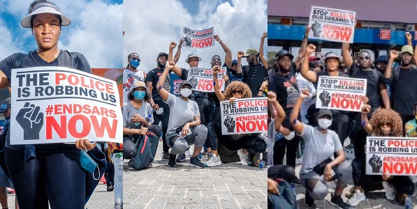 The mother of four took to her Instagram page to share pictures of herself and her family partaking in the #EndSARS protest.