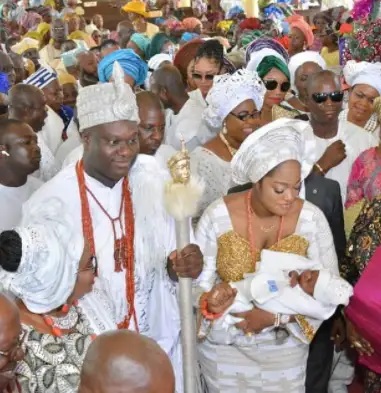Ooni of Ife, Oba Adeyeye Ogunwusi, and his wife Queen Silekunola Naomi dedicated their son in Church yesterday, Sunday, December 20th.