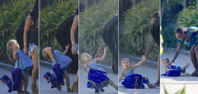 Thankfully, the child’s nanny was there to quickly pick her up.