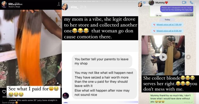 However, her mother who appears to be a no-nonsense woman, decided to take matters into her own hands. She drove down to the vendor’s shop and seized a wig worth more than what her daughter paid for.