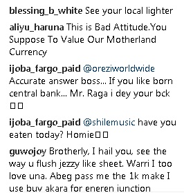 Your father… You are burning Nigerian currency as if is paper, you will now tell people to respect Nigeria??