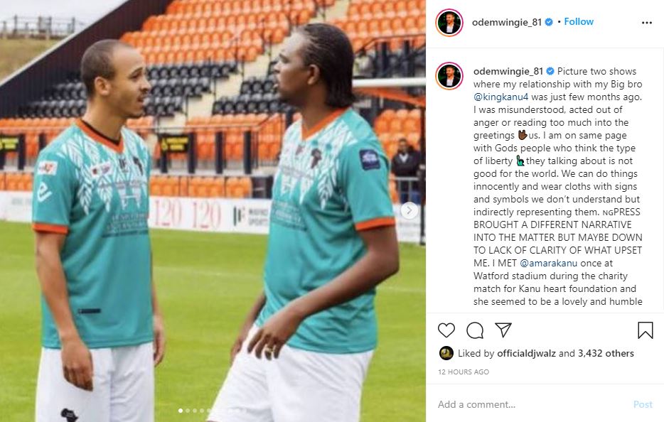 “Picture two shows where my relationship with my Big bro @kingkanu4 was just few months ago. I was misunderstood, acted out of anger or reading too much into the greetings.