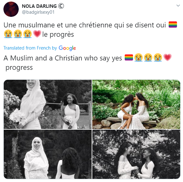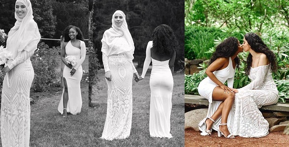 A Muslim and Christian lesbian couple got married and the photos from their union were shared online – the photos of course have caused a frenzy on social media.