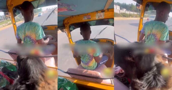 A frightening incident occurred when a passenger entered a Keke with a wild dog, causing the rider to grip the steering wheel tightly.