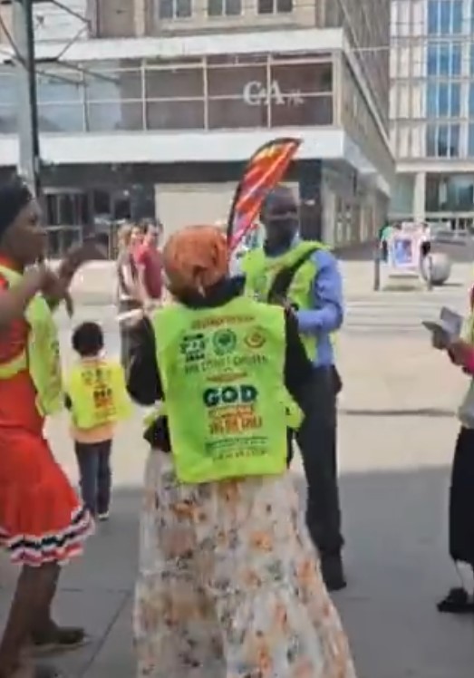 Revealing in the video, members of the Lord Chosen Church; adults and children were captured singing and dancing by the roadside in Germany as they propagated the gospel for their upcoming crusade.
