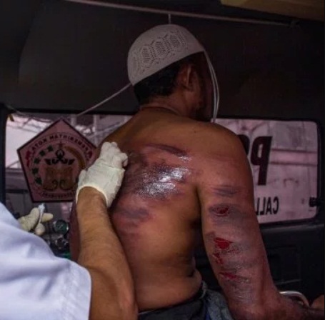 The other man being punished took all 100 lashes in silence while blood began to seep through his white shirt.