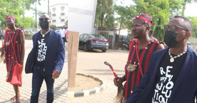 Part of Sowore’s entourage included a traditional spiritual leader dressed in full regalia in solidarity for the commencement of his trial.