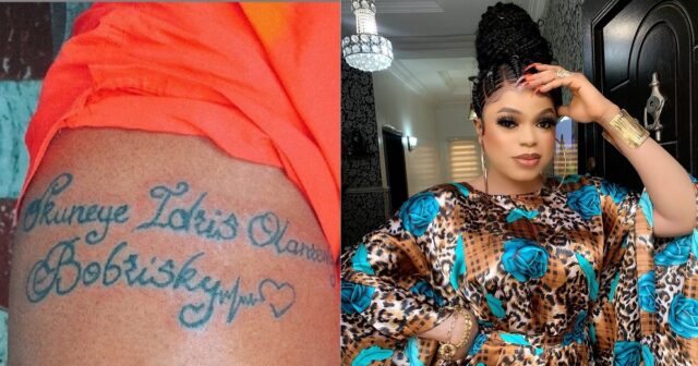 Popular Nigerian crossdresser and male barbie Idris Okuneye aka Bobrisky, has yet again rewarded a loyal fan after the fan inked his name on her skin.