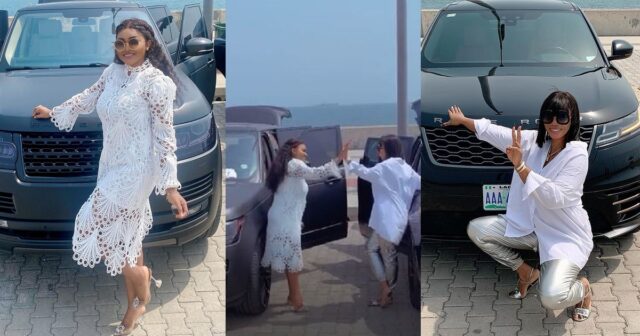 The mother of two who turned 43 on new years day, January 1st 2021 was gifted with a brand new Range Rover HSE worth millions of naira, by a friend as a belated birthday gift.