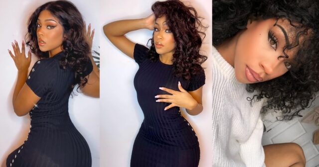The lovely who’s said to have a striking resemblance with her mother, took to her page to serve some of her latest gorgeous photos — dressed in black, the stunner served chic poses for the camera, much to the delight of her followers.