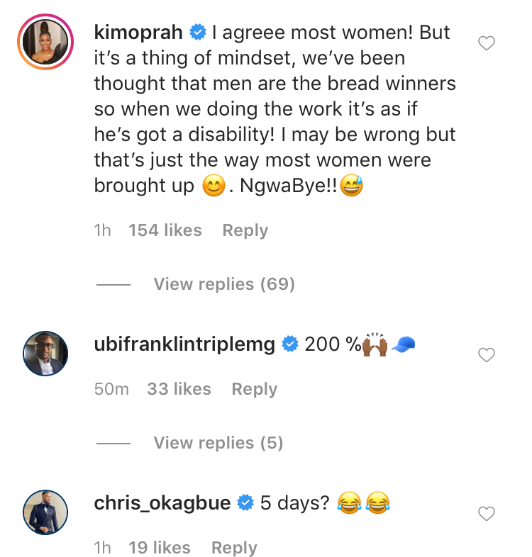 Somadima also acknowledged her post as he took to the comment section to reply her writing,