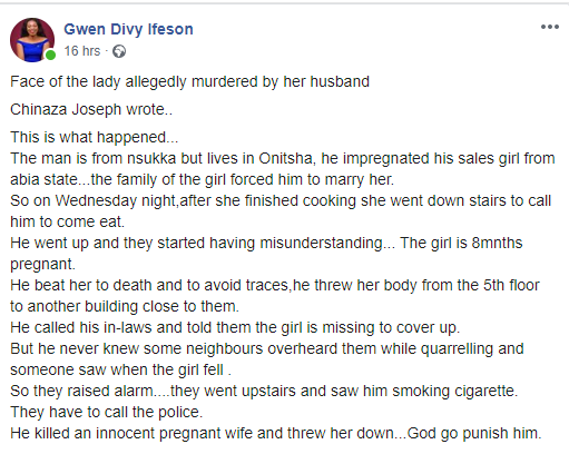 Larian is currently cooling off in police net as he was whisked away to Ekpoma zone. 5 police station for further questioning. It’s gathered that the deceased was a graduate of Ambrose Alli Univeristy as well and awaiting her result which was released on the day she died.