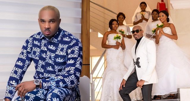 Pretty Mike was the cynosure of all eyes today Septeember 22nd when he stormed a wedding reception accompanied by five models who were dressed as brides.