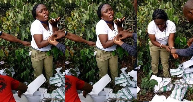 A female National Youth Service Corps member was reportedly caught destroying ballot papers in a bush in Imo State.