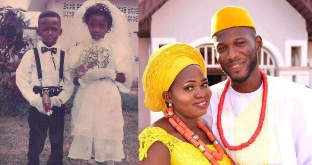 A boy and a girl who served in a bridal party almost three decades ago as a ring bearer and little bride respectively have gone on to become husband and wife 28 years later.