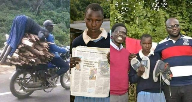According to the Standard, the young girl had reportedly walked for seven kilometers to help her grandmother gather firewood which she sells for their up-keep. A boda boda rider offered to help ferry the firewood with the girl balancing atop the bike.
