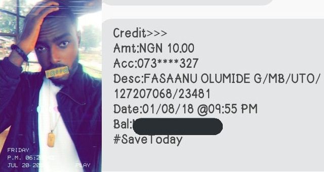 A Nigerian man has taKen to micro-blogging website, twitter, to share screenshot from a credit alert he received from someone on twitter after he posted his account details on the site.