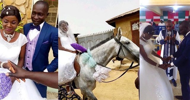 A newly wed bride has made news headlines after she was pictured riding a horse to her wedding yesterday at the Ecwa church, Tudun Wada, Jos, Plateau State.