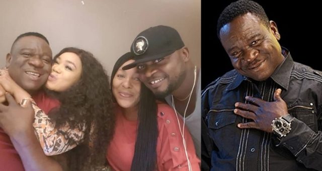 Nigerian comic actor, John Okafor better known as “Mr Ibu” was all “mushy mushy” as he held onto a very light-skinned woman in a group picture with friends.