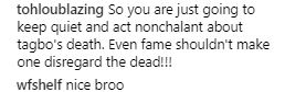 “My brother was buried on Friday and it is so sad that we have lost someone with a big heart. However, Davido was not present at the burial neither did he send a representative but at this point, we have no comment on that.”