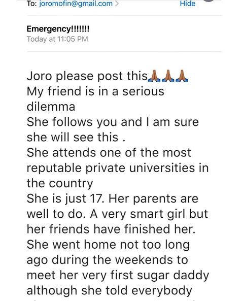 After a long time, he sent a chat telling me how she hasn’t changed and they had a minor misunderstanding because he put the nanny’s name on their business class trip to Dubai, that he should fix her younger sister not the nanny. He refused that it will be unfair of him and before he will start his car, she used her kitchen pestle to destroy my windscreen. I have been in a hotel for two days just to clear my head. I even miss my kids badly. I begged him to calm down and pray. I went ahead to request for her Facebook handle which he gave. I monitored her page and found out she’s a FIN member. Well, I told him to use prayers and help his wife. He still complained about her late nights and frivolous lifestyle. In his words, Jhoy I’m sorry I have to call my girlfriend. She gives me peace.