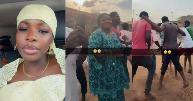 The event, captured by the bride’s sister, showed a cheerful atmosphere as guests expressed excitement. The Hausa men gathered in unison, dancing and cheering with the bride’s mother on her special day. The men graced the event, displaying a traditional dance performance.