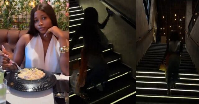 According to her, she had visited the venue and claimed to have spent over ₦150,000. While enjoying the moment, she decided to record herself ascending and descending the staircase.