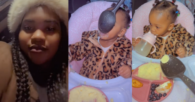 According to her, once she uses the item, the toddler eats calmly and finishes the meal without complaints. The video captured the toddler eating from a long spoon, mostly used to dish meals.