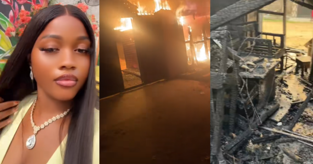 A video has sparked a conversation online after a lady revealed her ex-partner set her shop on fire after she ended the toxic relationship with him.