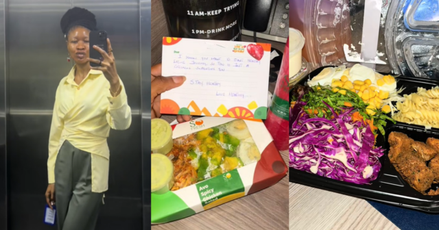 According to her, the person she believes works in the same office often sends her food without revealing his identity. She explained that the meals usually arrive through a delivery rider with a handwritten note.
