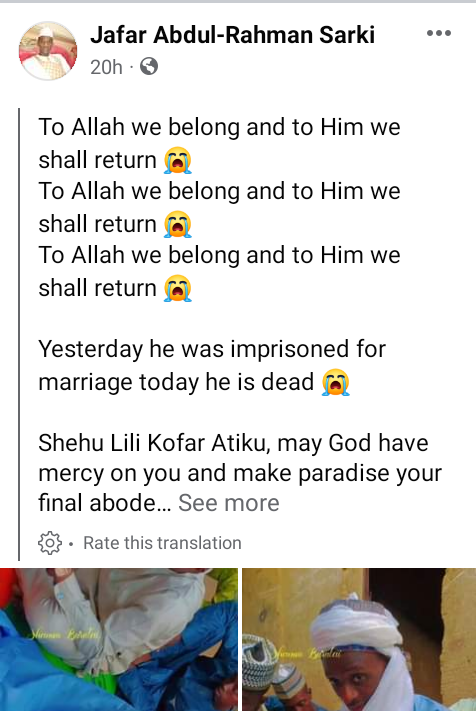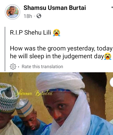 “Shalom! It is with deep pain in my heart, I inform you that min mark saladin a.k.a yaron zaki whose wedding is 3rd Dec, lost his fiance (Deborah) They were involved in a car accident along Gashua damaturu late hours of Saturday evening. It deemed the Lord to call her home early hours of yesterday (5:36am) May her soul rest with the Lord and may the Lord comfort the entire family of the late in Jesus mighty name Amen”