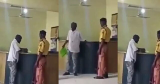 After he was caught the cleric is seen sitting on the floor in a now viral video, as he is confronted by people who claim they caught him in the act.