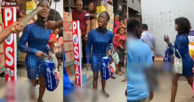 In the video that’s serving rounds, the crossdresser who was clad in a blue dress, had his nails colored blue and also donned a wig when he visited the market to purchase some things.