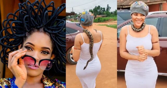 The model cum actress revealed this information on her Instagram page while sharing a video of herself dancing with a Python perched on her shoulder.